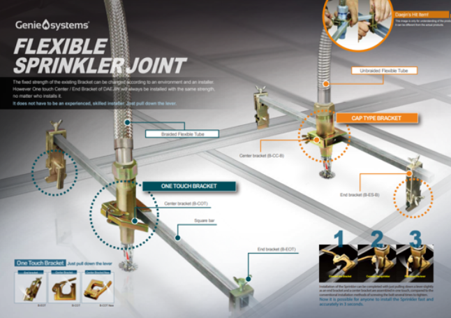 Daejin’s flexible sprinkler hose system helps you install sprinkler heads faster, easier, and with fewer tools — even in tight or complex spaces.